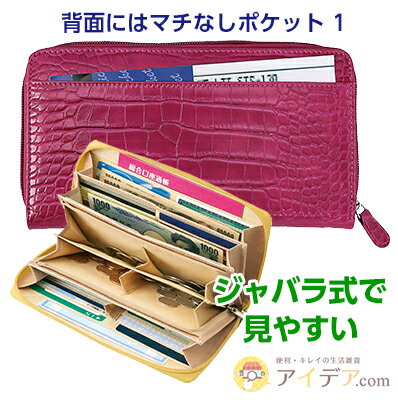 「36カードたっぷり仕分け財布」は、カバの口のように大きく開くジャバラ式なので、ひと目でどこに何があるかが分かります。