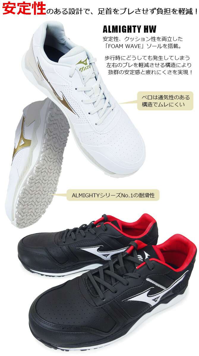 安全靴 スニーカー ミズノ MIZUNO オールマイティ ALMIGHTY HW11L F1GA2000 ローカット 紐タイプ セーフティシューズ プロアクティブスニーカーA種 耐油 耐滑 滑らない 樹脂先芯 通気性 ワーキングシューズ