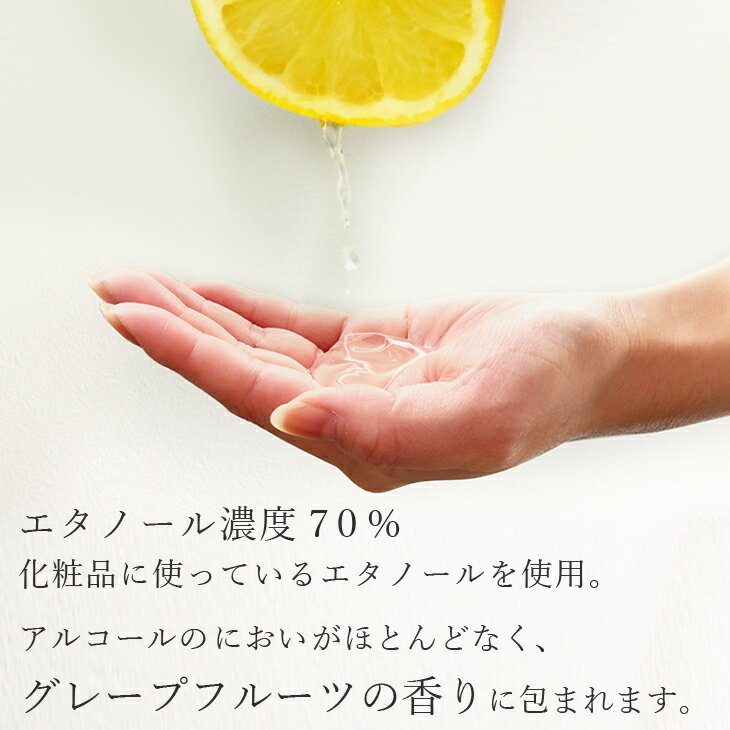 エタノール70%なのに化粧品のような高保湿、さらにグレープフルーツの爽やかな柑橘系の香りが持続します。